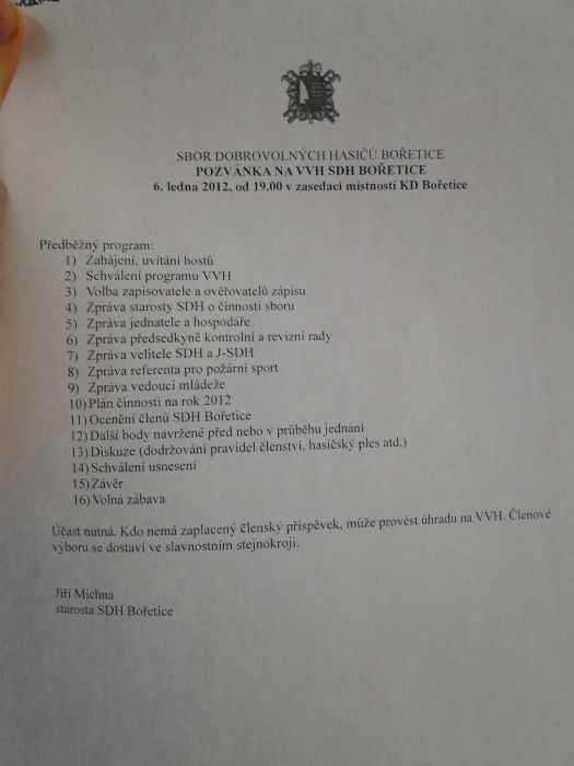 6. leden 2012 - Výroční valná hromada SDH Bořetice